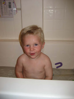 These pictures were from bath-time tonight. They were quite the little cheesie guys! I have some other cheesy ones - but they need to have some "modesty" edits - so I'll have to Photo-shop them and add them later.